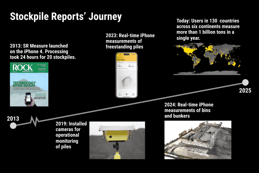 The path to one billion tons measured has been extraordinary. We started in 2012 with the idea of using an iPhone to measure stockpiles. Launching the first version of the SR Measure app in 2013, it took 24 hours to process results for 20 stockpiles. Today, SR Measure operates in 130 countries across six continents, serving industries from construction and quarrying to waste management and landscape materials production and distribution. This global expansion has introduced advanced measurement solutions to regions that were previously reliant on traditionally inaccurate manual estimates and costly surveying methods.