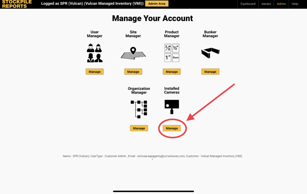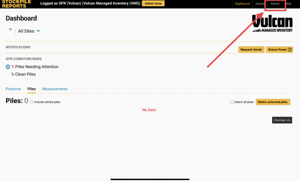 1. From the Stockpile Reports Web Dashboard, click the Admin tab.