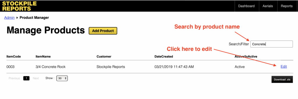 - From the Web Dashboard, click Admin → Manage under Product Manager.