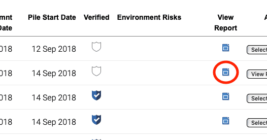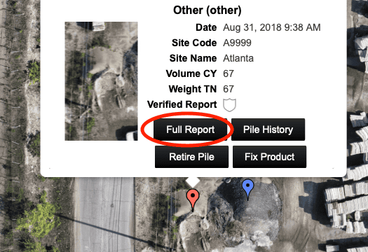 1. Open the Full Report on the measurement that needs to be verified from the map view or Piles tab.