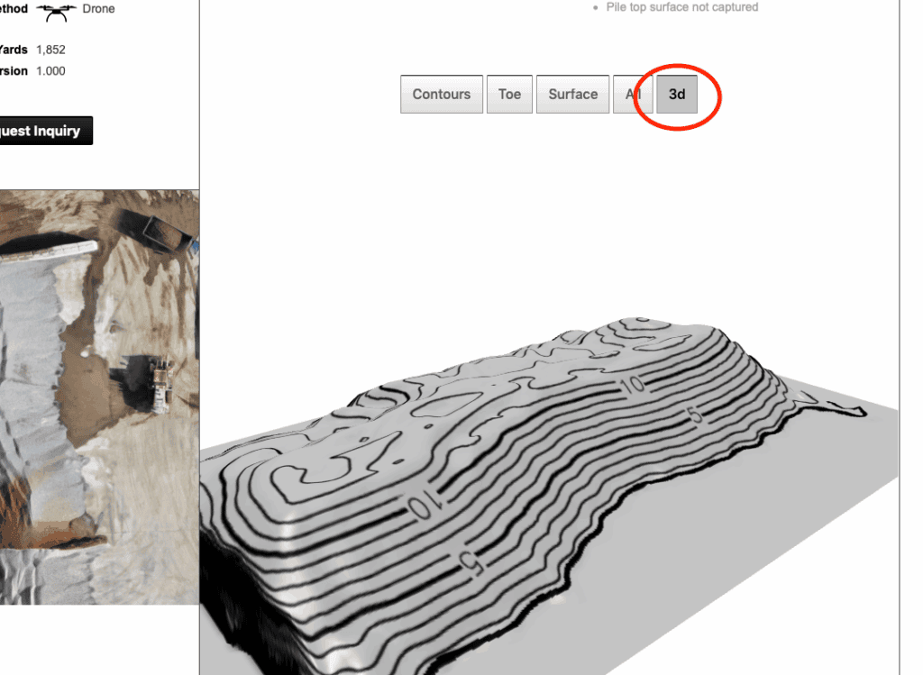 1. Inspect the 3D model of the pile to determine if the measurement accurately represents the shape of the material.