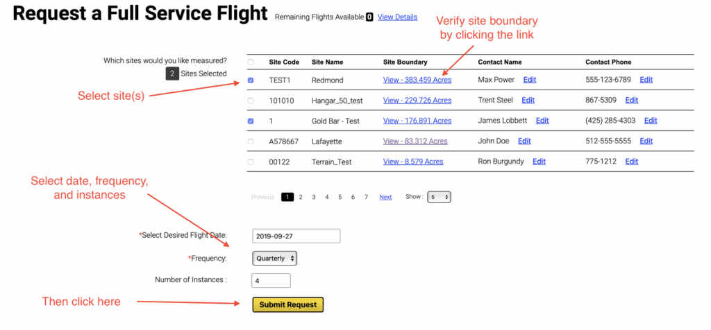 - Select site(s): Check the box next to the sites you want flown.
