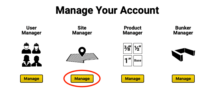 - On the Admin screen, under the Site Manager column, click the Manage button.