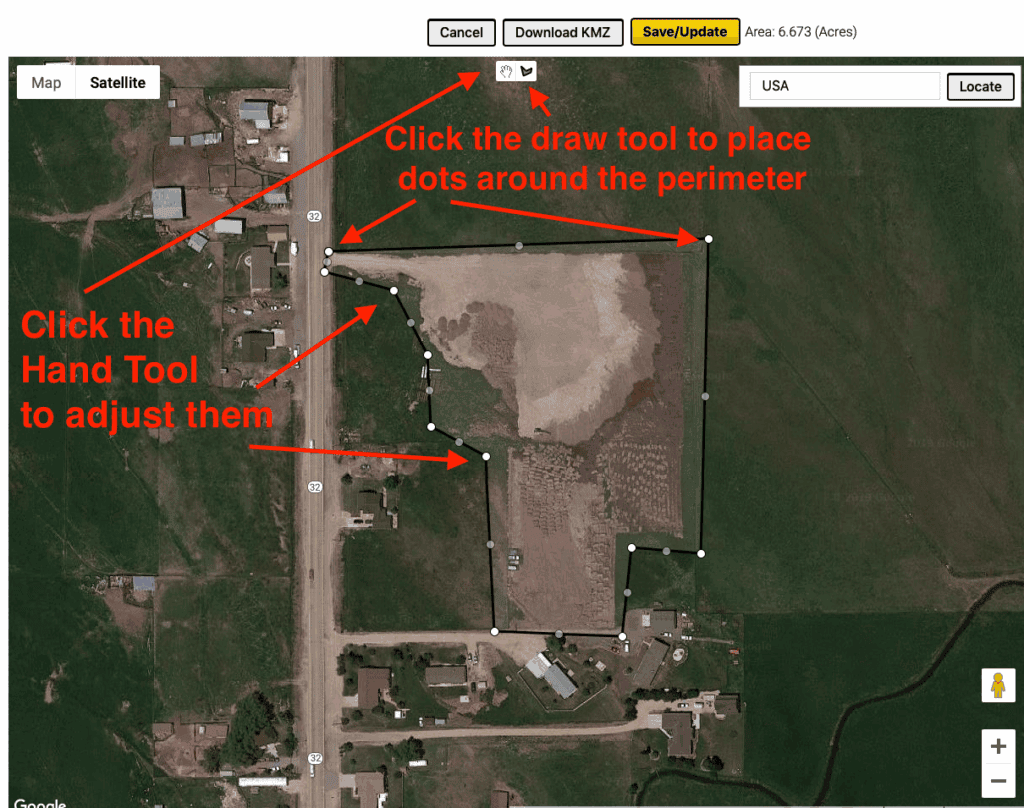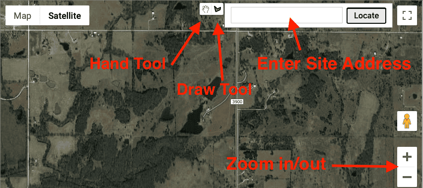 - Use the +/- button at the bottom right of the map to zoom in and out until your entire site is in view.