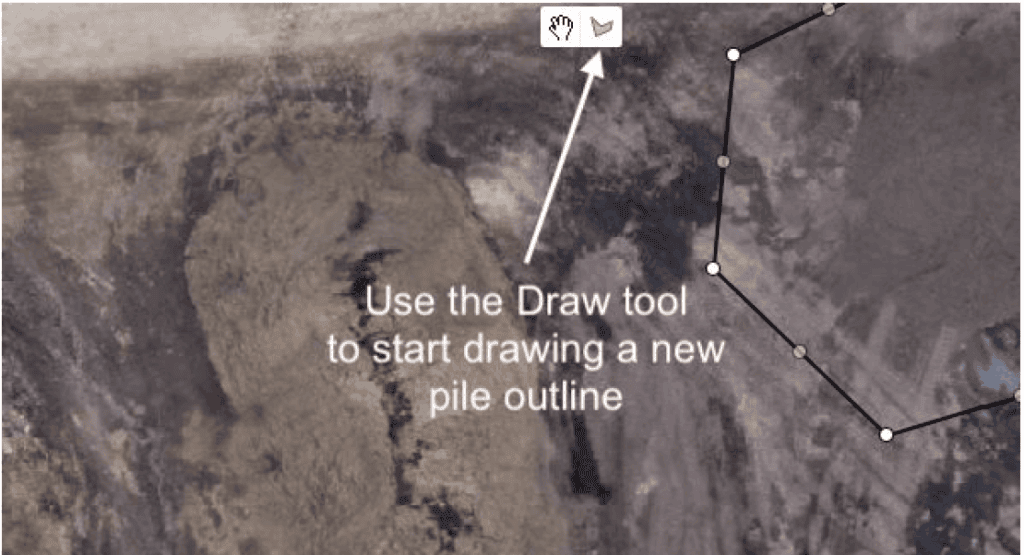 1. Click around the pile to start building the outline. Leave space between the outline and the pile. Outlining on the pile toe may cause materials to be missed in the measurement.