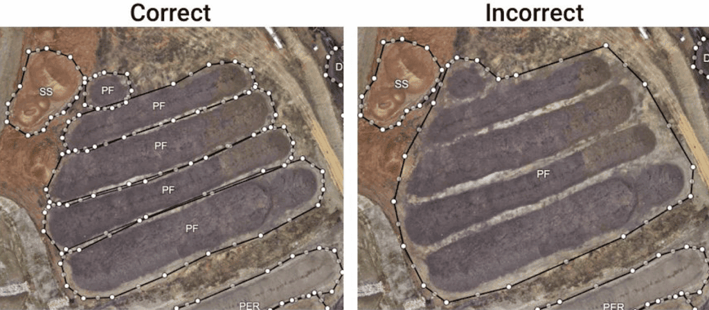 Pile outlines may overlap each other when piles are placed close to each other on the map. Only the target pile in the center of the outline will be included in the measurement.