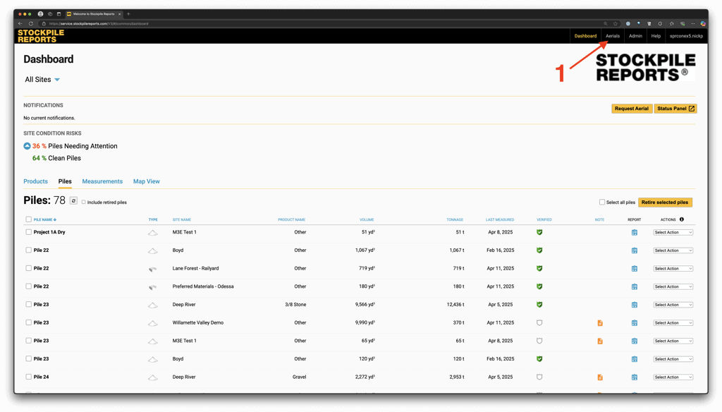 Viewing Aerial Reports From the Dashboard #
