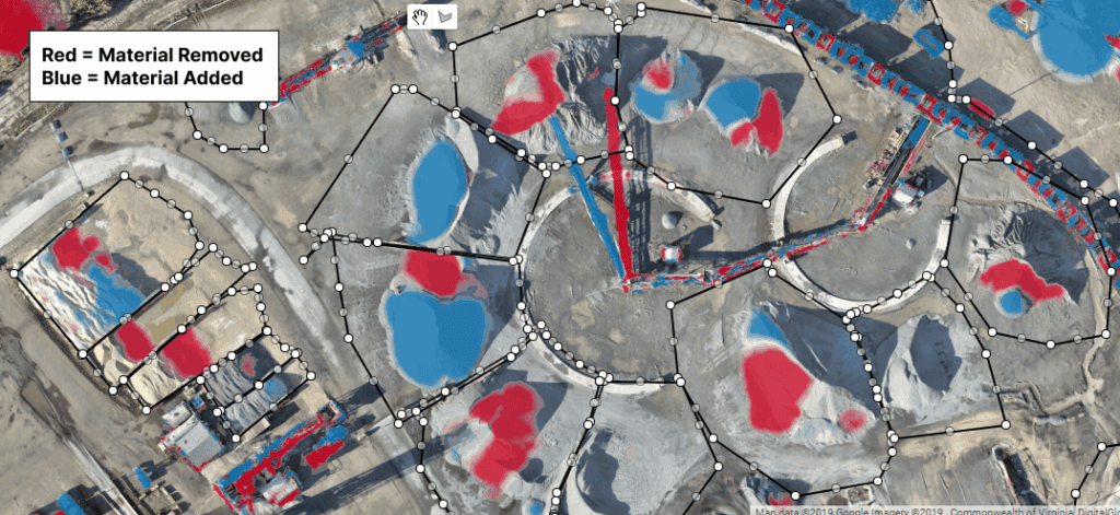 - Standing water – Drones can’t see through water. Pools of water around the piles hide the ground surface which can affect the measured ground level.